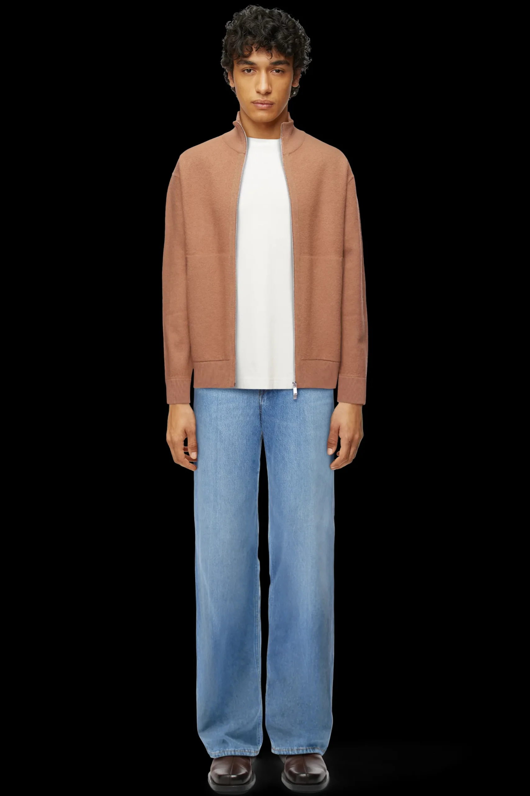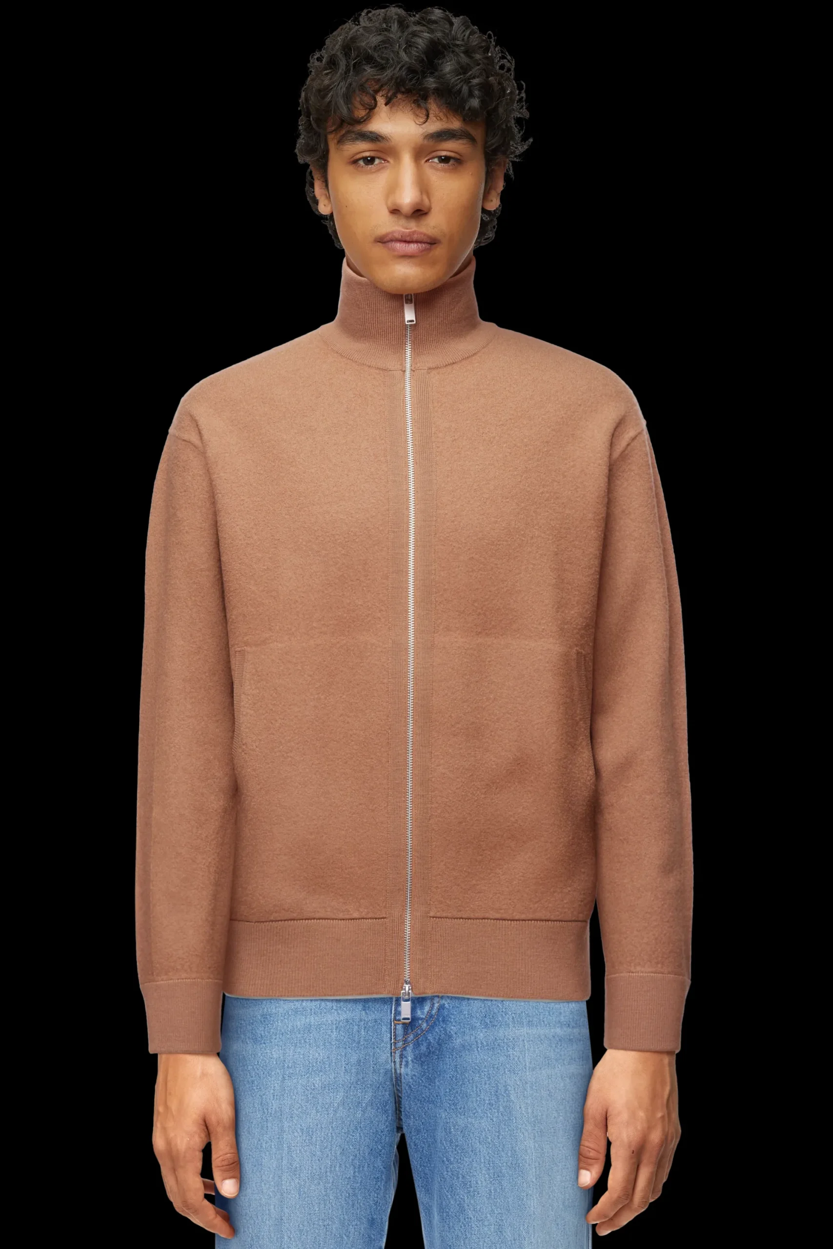 JANOR is een gebreid jack met een opstaande kraag, een gepolijste ritssluiting en zakken. De gekookte wol voelt warm en zacht aan dankzij de eigenschappen.